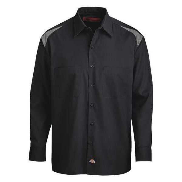 Long Sleeve Shirt, Gender Men's, Material 35 Percent Cotton, 65 Percent Polyester, Fabric Weight 4.6 oz, Front Closure Type Buttons, Number of Outside Pockets 2, Fit Generous Fit, Color Black/Gray, Sleeve Type Long, Sleeve Length 34 in, Size L, Minimum Neck Size 16 in, Maximum Neck Size 16 1/2 in, Maximum Chest Size 24 3/4 in, Length Regular, Application Managers, Mechanics, Service Providers, Technicians, Cleaning and Care Instructions Home Wash, Industrial Laundry, Collar Style Banded