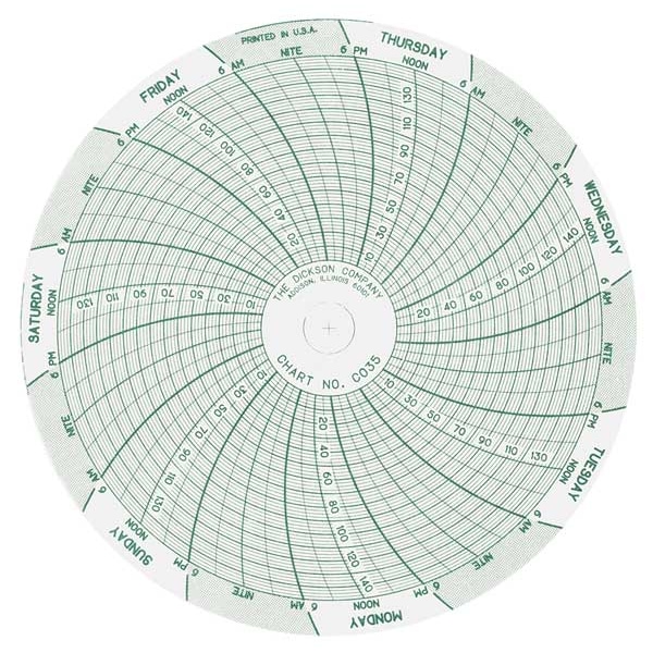 Chart, 4 In, 0 to 150 PSI, 7 Day, PK60