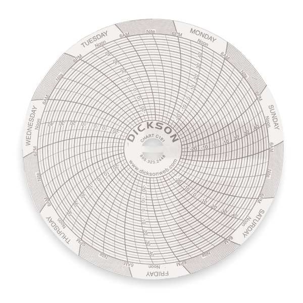 Chart, 4 In, -30 to 50 C, 7 Day, PK60