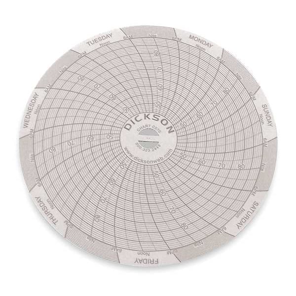 Circular Chart, 4 In, 45 to 90F, 7 Day, Pk60