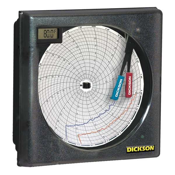 Circular Chart Recorder, Product Type Circular Chart Recorders, Recorder Width 7.56 in, Recorder Depth 3.25 in, Strip Chart Length Not Applicable, Calibration Certificate Type Not Certified, Includes AC Adapter, Blue Pen, Red Pen, Manufacturer Warranty Length 1 yr