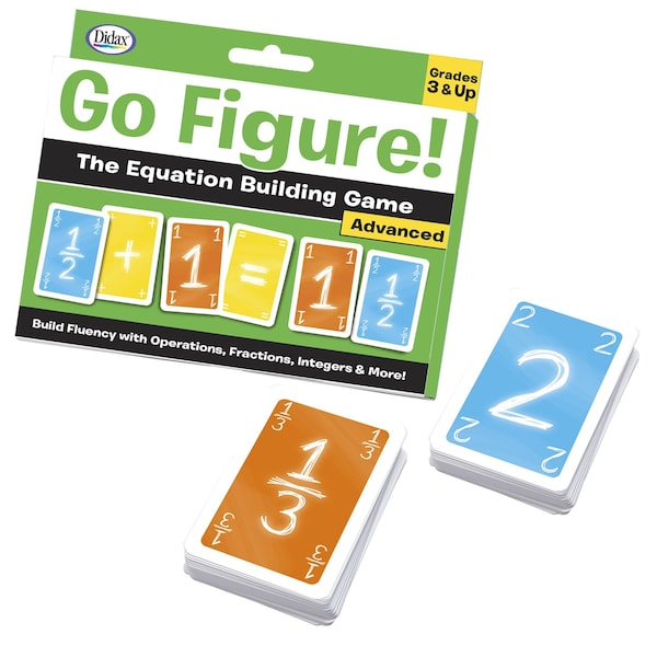 In this fast-paced, challenging game, children practice their fluency facts as they take turns building equations. The first player begins by creating an equation with the cards from their hand. Play continues as other players create new equations with their cards. Change the numbers! Change the operators! Just be sure your equation works! Be the first to use all your cards to win! Use these more advanced fractions, integers, variables, squares and square roots cards in conjunction with the Basic number and operations cards to build equations. Includes 107 cards.