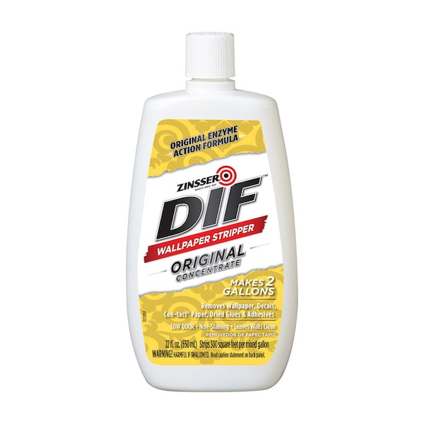 Zinsser DIF Liquid Concentrate Wallpaper Stripper provides an economical and powerful solution to old wallpaper and stubborn adhesives. Just add warm water to the concentrate, score the affected area and apply the stripper for quick removal. Unique, non-staining enzymes work in minutes to penetrate and loosen adhesive for an effective and safe clean.