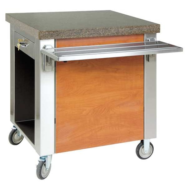 Cashier Stand with Drawer, Color Gray, Includes Drawer Yes, Number of Compartments 1, Material Stainless Steel, Overall Depth 30 in, Overall Height 36 in, Overall Width 28 in, Caster Diameter 5 in, Caster Material Polyurethane, Caster Type (2) Swivel with Brakes, (2) Swivel, Includes Foldout Rail, Standards ANSI, NSF, Weight 165 lb