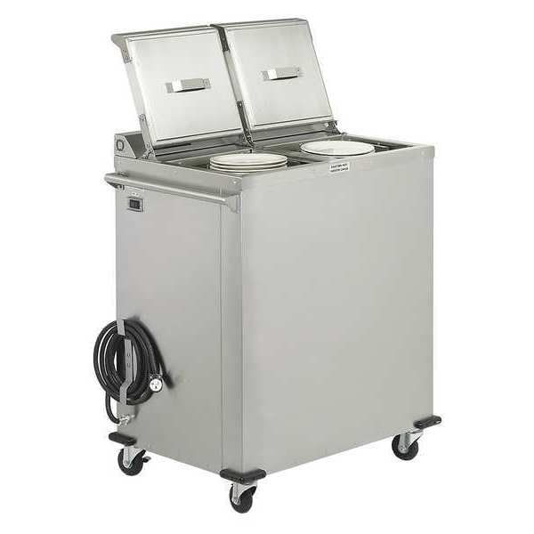 Plate Heater, Color Silver, Overall Height 43 in, Overall Width 23 3/4 in, Material Stainless Steel, Caster Type (2) Rigid, (2) Swivel, Heated/Unheated Heated, Caster Diameter 6 in, Caster Material Polyolefin, For Use With Plates, Includes Self Leveling Mechanism, Number of Shelves 0, Gauge 14 ga, Product Type Plate Dispenser, Current 23.1 A, Maximum Load Capacity 250 lb, Overall Length 45 in, Maximum Plate Diameter 10 1/4 in, Minimum Plate Diameter 7 1/2 in, Number of Compartments 3