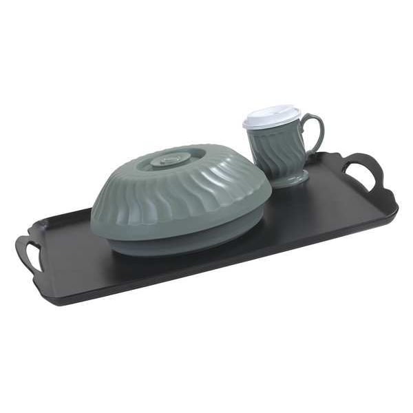 Tray, Overall Width 15 in, Overall Height 1 in, Material Plastic, Number of Compartments 1, Product Type Non-Skid Tray, Color Black, Handle Included Yes, Overall Length 20 in, NSF Certified No, Package Quantity 6