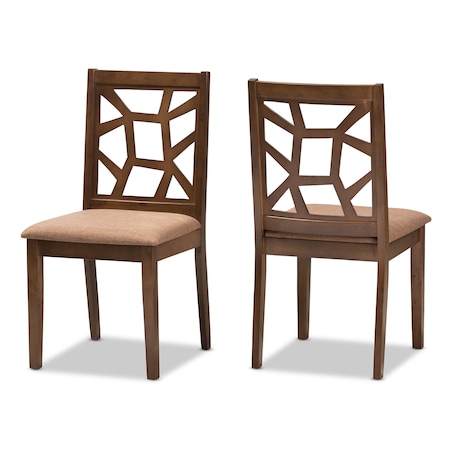 Moscow Modern Bohemian Natural Brown Rattan and Walnut Brown Mahogany Wood 2Piece Dining Chair Set