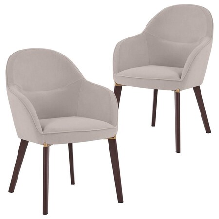 Kacela Modern Japandi Cream Boucle Fabric and Walnut Brown Finished Wood 2-Piece Dining Chair Set