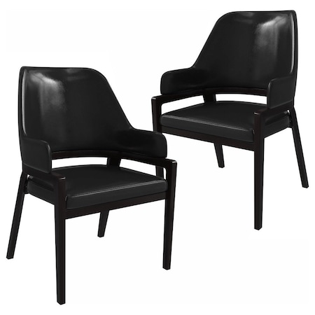 Gray and White Upholstered Faux Leather And Solid Wood King Louis Back Dining Arm Chairs, 2PK
