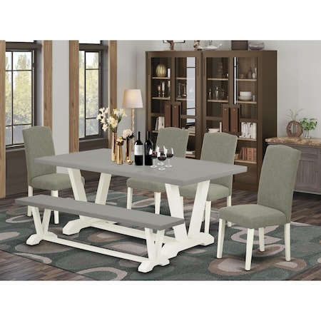 6 Piece V-Style Modern Dining Set - Linen White