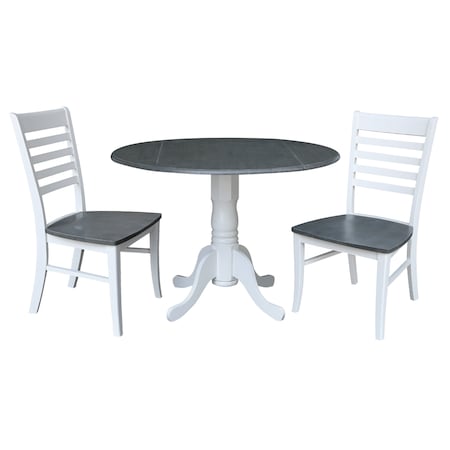 Round 42 in. Dual Drop Leaf Dining Table with 2 Ladderback Chairs - 3 Piece Dining Set, 42 in W