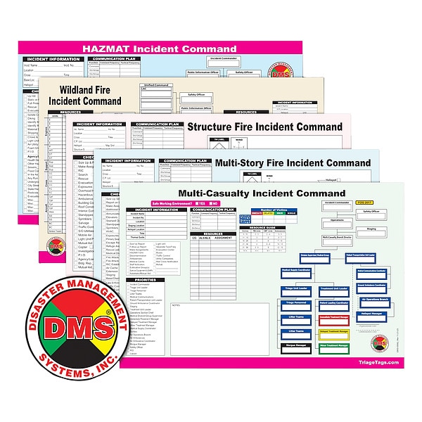 DMS-05562 Multi-Casualty Incident (MCI) Command Worksheet Pad, DMS-05563 Multi-Story Incident Command Worksheet Pad, DMS-05564 Structure Fire Incident Command Worksheet Pad, DMS-05565 Wildland Fire Incident Command Worksheet Pad, DMS-05566 HAZMAT Incident Command Worksheet Pad