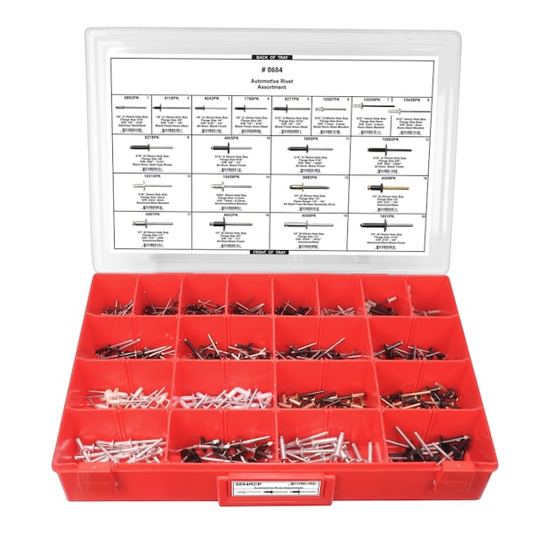 Automotive Rivet Assrtmnt Adj Red Tray W