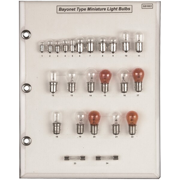 Bayonet Bulb Sample Board Sizes/Amperage