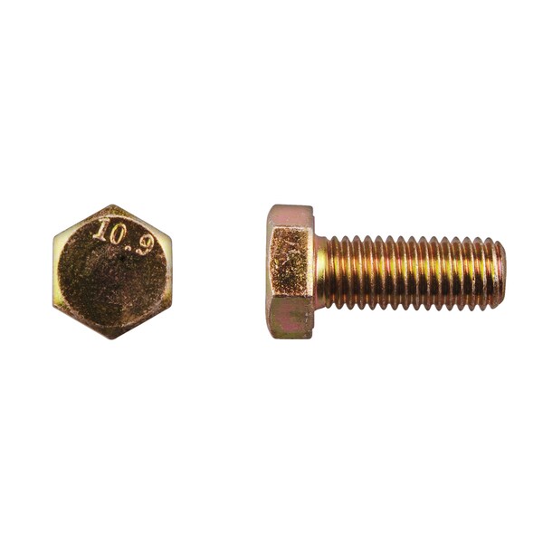 Class 10.9, M12-1.75 Hex Head Cap Screw, Zinc Yellow Steel, 30 mm L