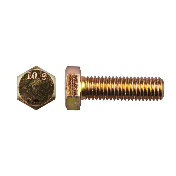 Class 10.9, M12-1.75 Hex Head Cap Screw, Zinc Yellow Steel, 40 mm L