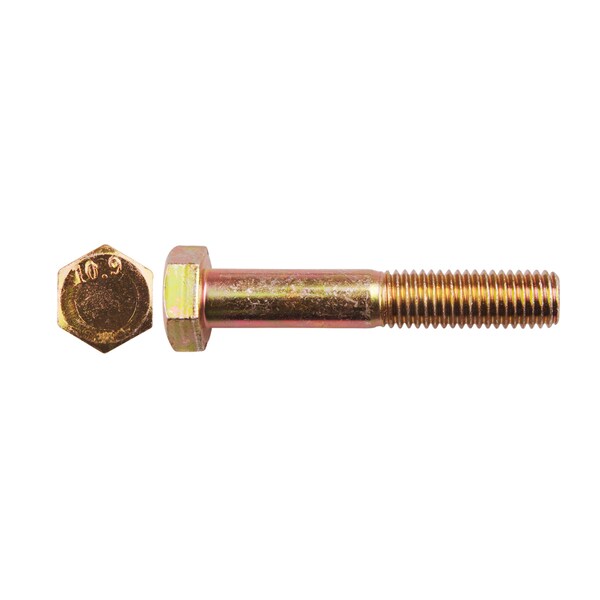 Class 10.9, M12-1.75 Hex Head Cap Screw, Zinc Yellow Steel, 70 mm L