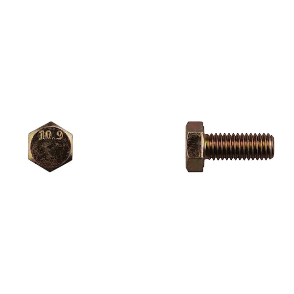 Class 10.9, M8-1.25 Hex Head Cap Screw, Zinc Yellow Steel, 20 mm L