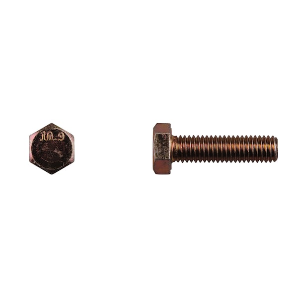 Class 10.9, M8-1.25 Hex Head Cap Screw, Zinc Yellow Steel, 30 mm L