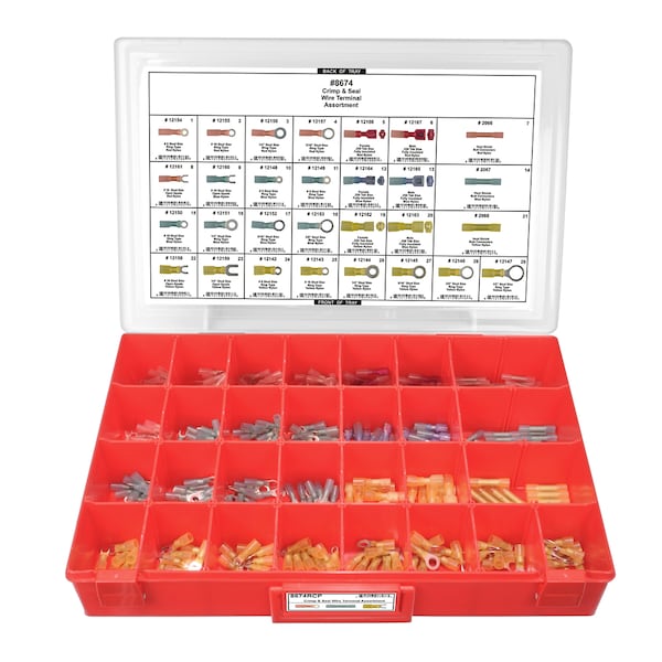 Crimp WireTerminal Assort Adj Red Tray W/Clr Lid