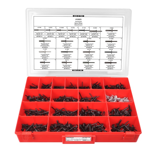Nyln Pop Rivet Assrtmnt Adj Red Tray,C
