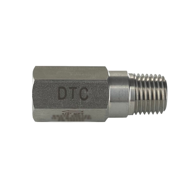 316SS Pressure Relief Valve PRV. Maximum working temperature 480F/250C, maximum pressure 750PSI. 1/4 in. Male Inlet x 1/4 in. Female connections. Adjustable from 20-100PSI, factory set at 100PSI opening pressure.