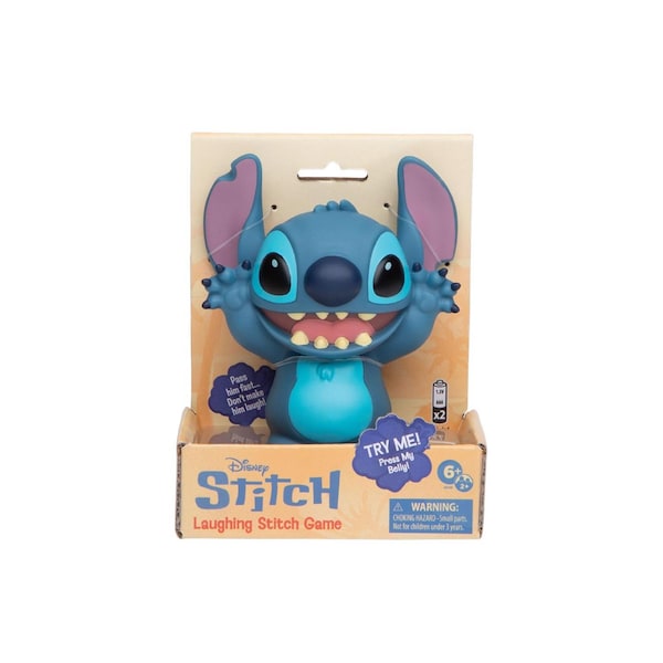Press Stitch's belly to start the music then roll the die to see which way to pass himbut hurry up. If you're holding Stitch when he laughs you'll have to take a token. The player with the fewest tokens is the winner. For 2 or more players ages 6 and up. Comes with electronic Stitch that plays music and laughs 20 ukulele tokens a die and rules. 2 AAA batteries included.