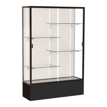 Edge Lighted Floor Case, Chocolate Back, Satin Frame, 6" Morro Zephyr Base, 48"W x 76"H x 20"D
