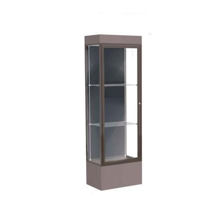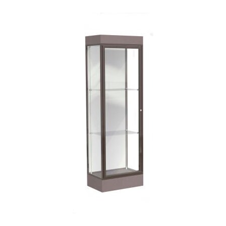 Edge Lighted Floor Case, White Back, Dark Bronze Frame, 6" Morro Zephyr Base, 24"W x 76"H x 20"D
