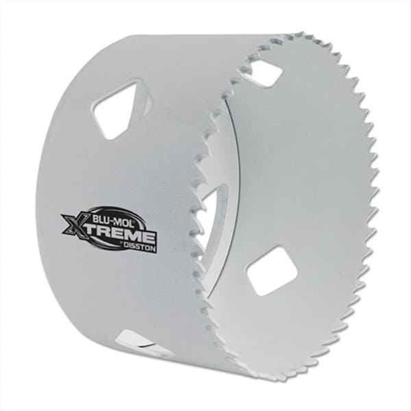 The BLU-MOL Xtreme Bi-Metal Hole Saw features a revolutionary design that increases visibility accuracy and improves battery and machine life. Diamond-shaped sidewall cutouts increase visibility while large openings on the backing plate allow for quick removal of cut materials. The saw includes fleem ground teeth for longer life. Application -Creates holes for pipe and tubing installations door lock installations electrical conduit hoses and antennas. -Ideal for plumbing construction aircraft electrical maintenance and automotive applications -Use in steel aluminum brass cast iron plastic or wood. Features -Collection - Blu-Mol Xtreme -Fleem Ground Teeth -M42 cobalt bi-metal construction -Wide slot design on side walls and backing plate for increased visibility while cutting -Cuts 30% faster than conventional saws -Thin kerf design -Prolongs battery life when used on cordless tools -Depth - 3-5/8 in. -xtreme Bi-Metal Hole Saw -Dimension - 2.09 x 2.09 x 3.63 in. -Item weight - 0.84 lbs.