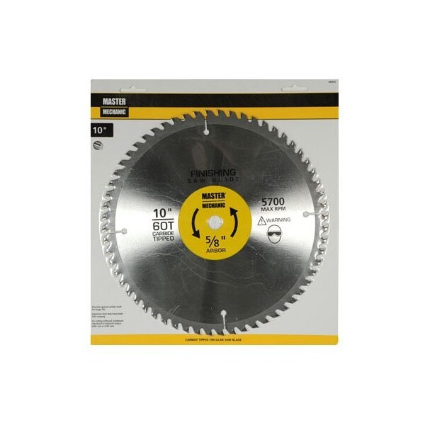 Master Mechanic, 10 x 60 Tooth, Precision Cutoff, Circular Saw Blade, For Extra Smooth Cross Cutting Miters In Plywood, Veneer, Trim Materials Solid Woods, Carbide Tipped Blades Stay Sharp Longer, Cut Hard Materials Better, Plastic Storage Case Package With Hang Tab