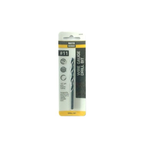 Master Mechanic, 11, 312, M7, Black Oxide, Wire Gauge Number Drill Bit, Jobber Length, Straight Shank, 135 Split Point Eliminates Walking Provides Quick Starting, Surface Treated With Black Oxide Finish For Abrasion Resistance Improved Chip Flow, Designed For Precision Hole Sizing Such As Tapping Threaded Holes, Wire Gauge Diameters Fall Between Fractional Sizes For Most Precise Hole Sizes, Taps Through Sizes 1428 Require The Use Of Wire Gauge Bits, Carded