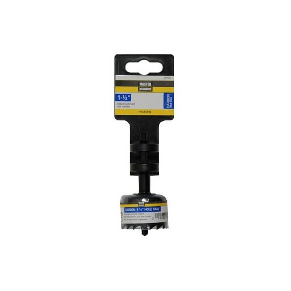 Master Mechanic, 112, Carbon Hole Saw, With Pilot Drill, Heat Treated Carbon Steel, 1 Depth Of Cut, Designed To Cut Wood, Composite Material Plastic, Includes Carbon Hole Saw With Integrated Mandrel Which Eliminates Assembly, Clamshell Package
