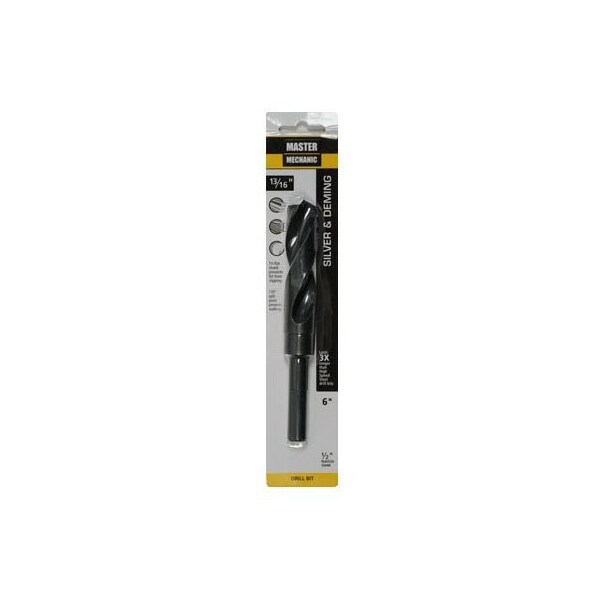 Master Mechanic, 1316 x 6, Silver Deming, High Speed Steel, Black Oxide, Drill Bit, Jobber Length, 12 Reduced Shank, 318 Flute Length, Black Oxide Finish Allows Improved Chip Flow Increases Abrasion Resistance, Recommended For Drilling Wood, Plastic Soft Metals, Used In Machine Shops Using Screw Machines Or Where The Maximum Chuck Capacity Is 12, Carded
