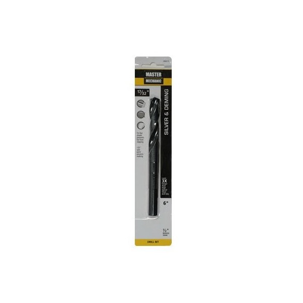 Master Mechanic, 1732 x 6, Silver Deming, High Speed Steel, Black Oxide, Drill Bit, Jobber Length, 12 Reduced Shank, 318 Flute Length, Black Oxide Finish Allows Improved Chip Flow Increases Abrasion Resistance, Recommended For Drilling Wood, Plastic Soft Metals, Used In Machine Shops Using Screw Machines Or Where The Maximum Chuck Capacity Is 12, Carded