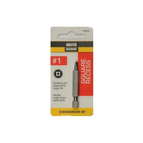 Master Mechanic, 1 Square Recessed 2 Screwdriver Bit, Maximum Durability Shock Resistant Tool Steel, Snub Nose Design Lasts Longer, Higher Torque Advanced Hardening Process
