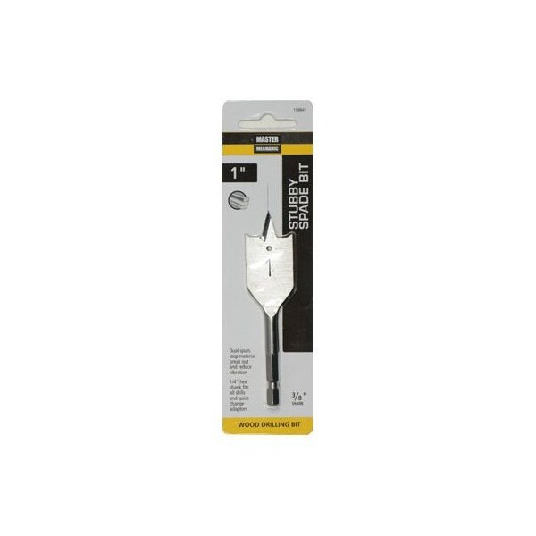 Master Mechanic, 1 x 4, Stubby Spade Bit, Has Cutting Spurs For Cutting Smooth Fast While Eliminating Wood Splintering, 4 Length For Hard To Reach Places, Carded
