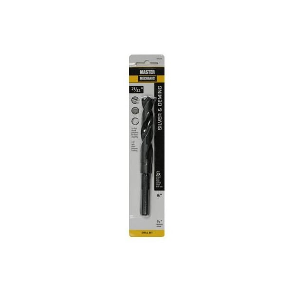 Master Mechanic, 2132 x 6, Silver Deming, High Speed Steel, Black Oxide, Drill Bit, Jobber Length, 12 Reduced Shank, 318 Flute Length, Black Oxide Finish Allows Improved Chip Flow Increases Abrasion Resistance, Recommended For Drilling Wood, Plastic Soft Metals, Used In Machine Shops Using Screw Machines Or Where The Maximum Chuck Capacity Is 12, Carded