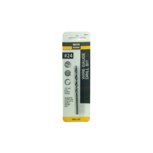Master Mechanic, 24, 318, Black Oxide, Wire Gauge Number Drill Bit, Jobber Length, Straight Shank, 135 Split Point Eliminates Walking Provides Quick Starting, Surface Treated With Black Oxide Finish For Abrasion Resistance Improved Chip Flow, Designed For Precision Hole Sizing Such As Tapping Threaded Holes, Wire Gauge Diameters Fall Between Fractional Sizes For Most Precise Hole Sizes, Taps Through Sizes 1428 Require The Use Of Wire Gauge Bits, Carded