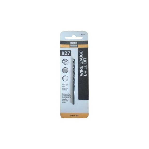 Master Mechanic, 27, 3, Black Oxide, Wire Gauge Number Drill Bit, Jobber Length, Straight Shank, 135 Split Point Eliminates Walking Provides Quick Starting, Surface Treated With Black Oxide Finish For Abrasion Resistance Improved Chip Flow, Designed For Precision Hole Sizing Such As Tapping Threaded Holes, Wire Gauge Diameters Fall Between Fractional Sizes For Most Precise Hole Sizes, Taps Through Sizes 1428 Require The Use Of Wire Gauge Bits, Carded