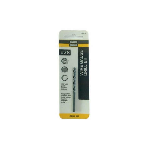 Master Mechanic, 28, 278, Black Oxide, Wire Gauge Number Drill Bit, Jobber Length, Straight Shank, 135 Split Point Eliminates Walking Provides Quick Starting, Surface Treated With Black Oxide Finish For Abrasion Resistance Improved Chip Flow, Designed For Precision Hole Sizing Such As Tapping Threaded Holes, Wire Gauge Diameters Fall Between Fractional Sizes For Most Precise Hole Sizes, Taps Through Sizes 1428 Require The Use Of Wire Gauge Bits, Carded