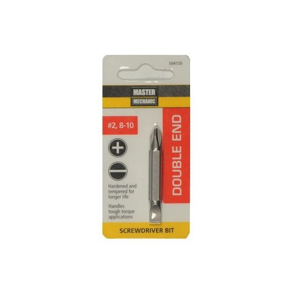 Master Mechanic, 2 Phillips Double Ended Insert Bit, 810 Slotted, 2 Bit Tips Are Designed For Use With Bit Tip Holders For Easy, Quick Bit Changes, Last Longer Snub Nose Design, Maximum Durability Shock Resistant Tool Steel