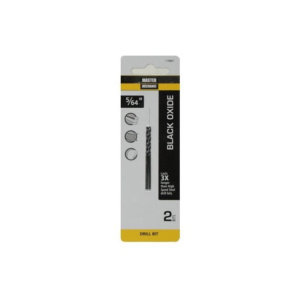 Master Mechanic, 2 Pack, 564 x 2, High Speed Steel, Black Oxide, Drill Bit, 135 Split Point, Jobber Length, Straight Shank, 135 Point Angle With 4 Cutting Edges Which Eliminate Walking Provide Fast Penetration, Black Oxide Tempering Treatment Reduces Frictional Resistance Improves Chip Flow, Recommended For Wood, Plastic, Wallboard, Plywood Soft Metals, Aluminum, Brass Bronze, For Occasional Use In Stainless Steel Other Hard Metals