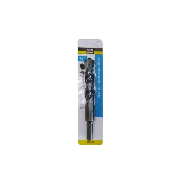 Master Mechanic, 34 x 6, Rotary Percussion, Masonry Drill Bit, Black Oxide, Carbide Tipped Designed For Use In Drills With Rotary Or Hammer Mode, Recommended For Drilling Cinder Block, Common Hard Brick, Plaster, Ceramic Tile, Glazed Tile Wet Or Dry Concrete For Moderate Use In Marble, Granite Concrete Over 6000 PSI, Carded