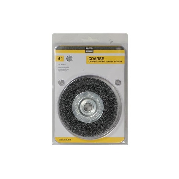 Master Mechanic, 4, Coarse, Crimped Wire Wheel, 38 To 12 Arbor Size, For Use At Speeds Up To 4,500 RPM, 012 Gauge Wire, For Stripping Paint, Removing Rust Loose Material