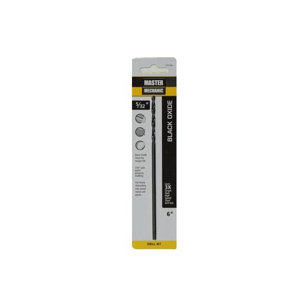 Master Mechanic, 532 x 6, Extra Length, High Speed Steel, Black Oxide Drill Bit, 135 Point Angle With 4 Cutting Edges Which Eliminate Walking Provide Fast Penetration, Black Oxide Tempering Treatment Reduces Frictional Resistance Improves Chip Flow, Recommended For Wood, Plastic, Wallboard, Plywood Soft Metals, Aluminum, Brass, Bronze, For Occasional Use In Stainless Steel Other Hard Metals, Carded