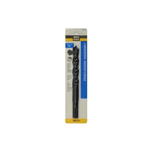 Master Mechanic, 58 x 6, Rotary Percussion, Masonry Drill Bit, Black Oxide, Carbide Tipped Designed For Use In Drills With Rotary Or Hammer Mode, Recommended For Drilling Cinder Block, Common Hard Brick, Plaster, Ceramic Tile, Glazed Tile Wet Or Dry Concrete For Moderate Use In Marble, Granite Concrete Over 6000 PSI, Carded