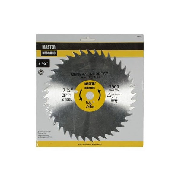 Master Mechanic, 714, 40 Tooth, Steel, Combination Saw Blade, For Smooth, Fast Cutting, Ripping Cross Cutting In All Woods, Manufactured To Exacting Standards For Consistent Performance, Plastic Storage Case Package With Hang Tab