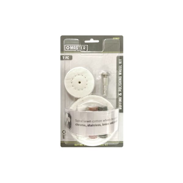 Master Mechanic, 7 piece buffing and polishing kit Kit consist of white rouge mini compound stick, brown tripoli mini compound stick, black emery mini compound stick, 2 14 in cushion sewn buffing wheel, 3 in cushion sewn buffing wheel, 4 in cushion sewn buffing wheel and 14 in hex mandrel with threaded screw For use on stainless steel, chrome, brass and plastic Cushion sewn wheel is used for luster buffing, cleans and shines intricate shapes, crevices and fine detail