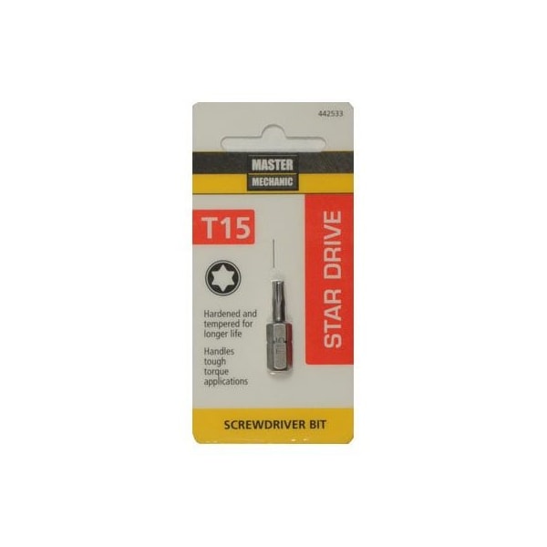 Master Mechanic, Torx 15 1 Insert Bit Tip, Use With Bit Tip Holders, Used For Automobiles Including Headlights, Maximum Durability Shock Resistant Tool Steel